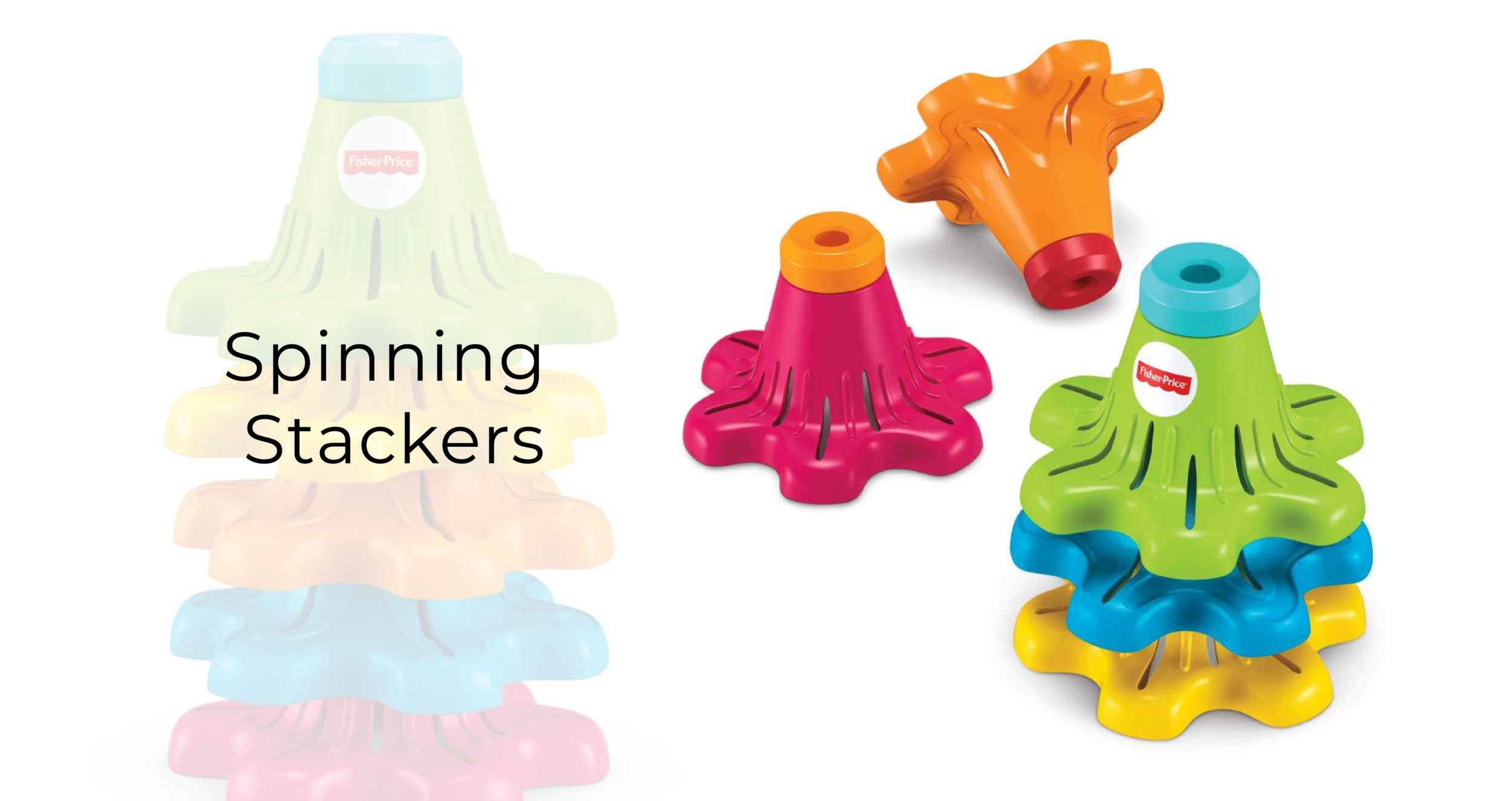 The idea of stack-able spinning tops came from an engineer on the infant toy team, bringing a new “spin” to the classic Rock-a-Stack.